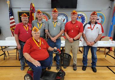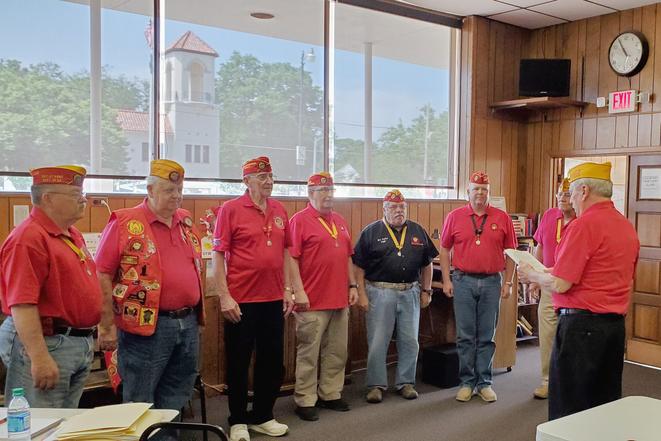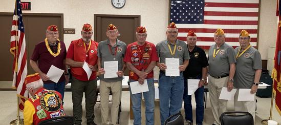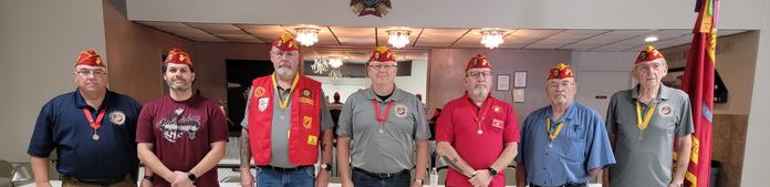 Judge Advocate: Bryson Allen, Chaplian: George Waugh, Adjutant / Paymaster: Harvey Harris, Commandant: Joe Hughes, Sr. Vice Commandant: Rick "Doc" Pustka, Jr. Vice Commandant: Paul McGuire, SGT at Arms: Eldon "Doc" Holsey, Jr. Past Commandant: Jan Denney (not pictures) (Elections, June 02, 2018)
