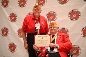 Jan Denney receives the highest Marine Corps League award from National Commandant Wendall Webb at the 2019 MCL Nationial Convention in Billings, MT. The Distinguished Citizen Gold was presented for Jan's creation of the Kansas Veterans Project Inc and his many hours supporting homeless veterans. CONGRATULATIONS.