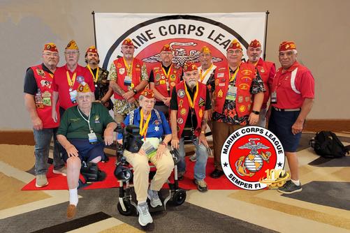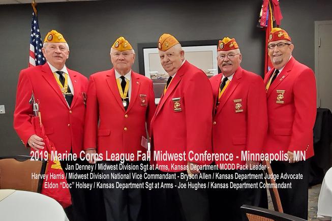 Marine Corps League 2019 National Convention / Billings, MT.Back Row:: Joe Hughes, Harvey Harris, Eldon "Doc" Holsey, Jan Denney. Front Row: Bryson Allen, George Kline, Iowa