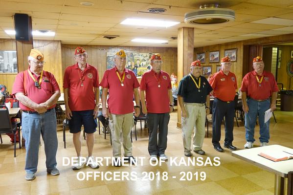 2023-2024 Department of Kansas Officers: Al Sanchez - Chaplain, Joel Wilson - Judge/ Advocate, Bill Koonce - Sr Vice Commandant, Wes Topel - Commandant, Nathan Bogard - Jr. Vice Commandant, Eldon "Doc" Holsey - Sgt at Arms - George Waugh - Jr. Past Commandant.